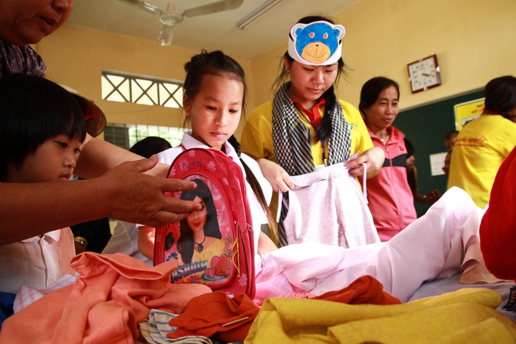 | Chiến sĩ giúp đỡ các em học sinh đổi đồ tại gian hàng đổi đồ trong ngày hội. Với mỗi bức tranh vẽ được, các em sẽ được đổi một món đồ bất kỳ từ quần áo, sách cho đến dụng cụ học tập… |