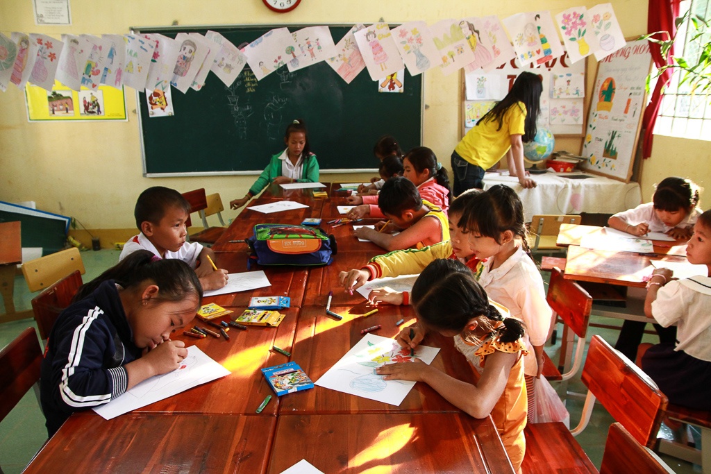 | Khu vực phòng “Vẽ ước mơ”. Đây là nơi các em thiếu nhi có thể vẽ thỏa thích và sau đó đem tranh đi đổi những món đồ mình mong muốn. |