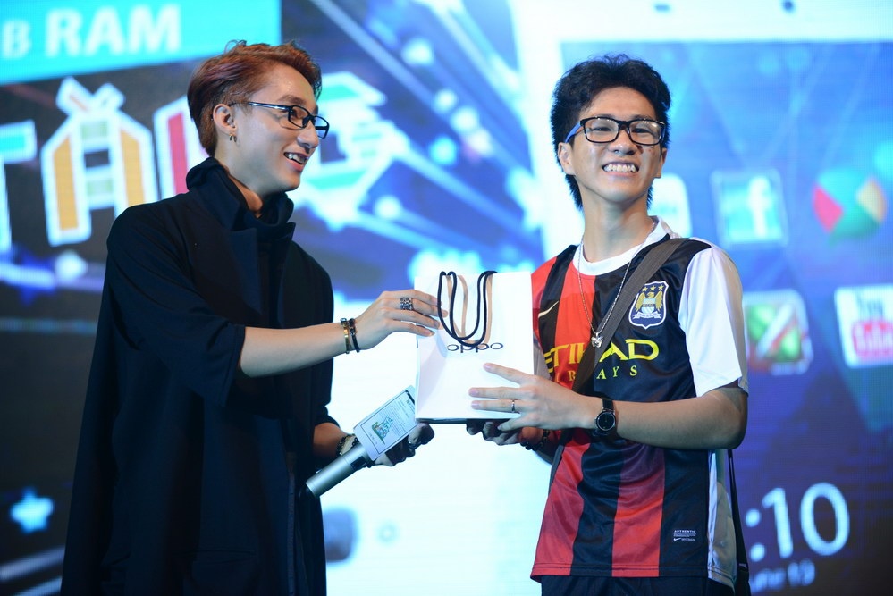 | Anh chàng cũng nhận nhiệm vụ bốc thăm may mắn, và thay mặt OPPO trao quà tặng là một chiếc Neo 3 đến khán giả trúng thưởng trong chương trình. |