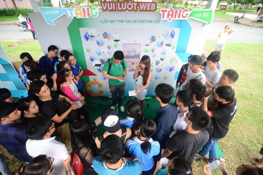 | Tại ngày hội, các bạn trẻ được trải nghiệm những tính năng có sẵn của Neo 3, chiếc điện thoại dành cho sinh viên trong năm học mới. Các bạn còn được hưởng khuyến mãi: tặng 1 GB 3G tốc độ cao mỗi tháng trong suốt một năm. |