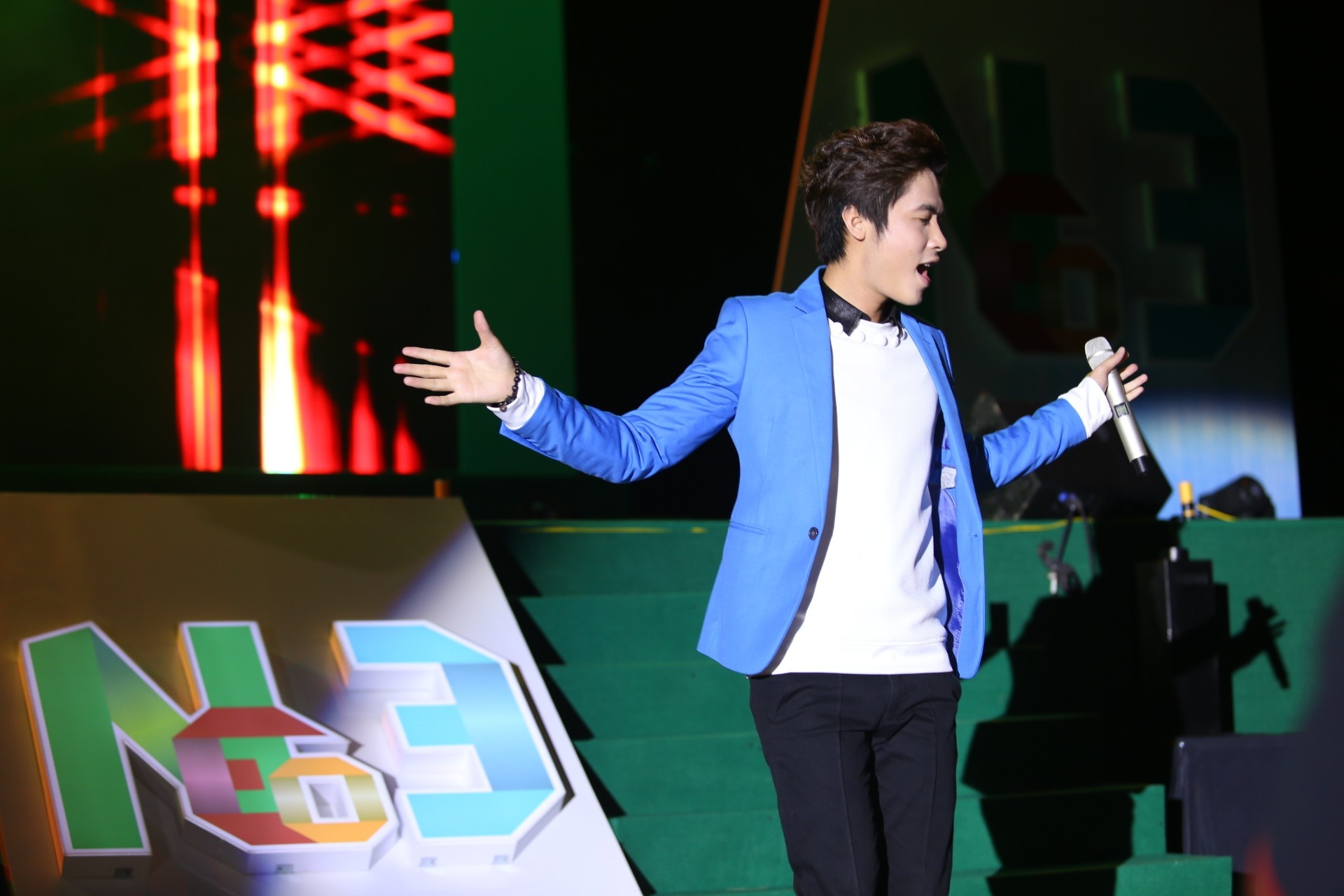 | Bốn chàng trai nhóm 365 bùng nổ không kém khi tiến sát khu vực khán giả để bắt tay fan. |