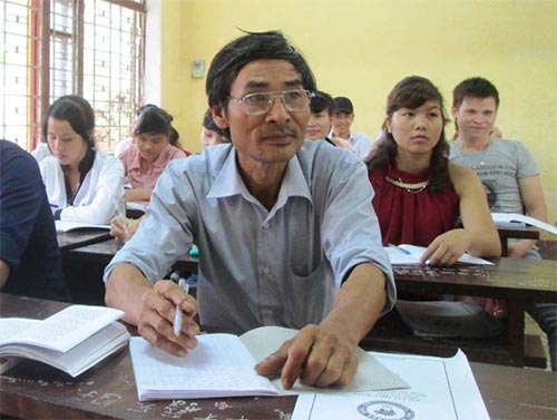 | Ông Hoàng Văn Toán thi ĐH để khuyến khích con trở lại giảng đường. |