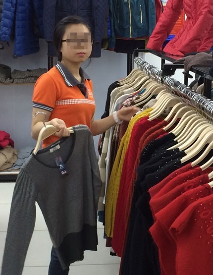 Sáng 5/12, tại một siêu thị thời trang ở phố Ngọc Khánh (Hà Nội), các nhân viên bán hàng, chủ yếu là sinh viên đang sắp xếp lại hàng hóa. Hoàng Thị Thơ (sinh viên năm thứ tư, ĐH Hà Nội) cho biết, hơn 6h sáng em đã phải dậy, đi xe bus từ Thanh Xuân đến đây để dọn hàng.