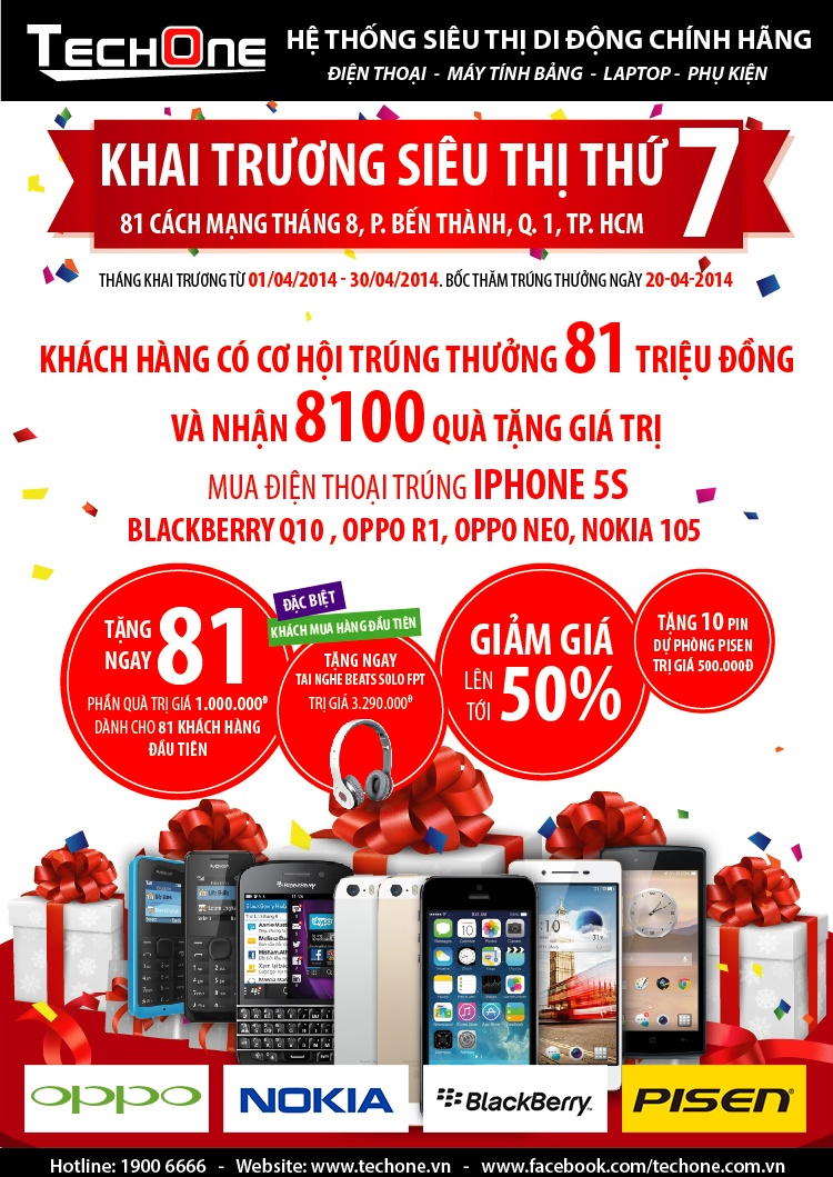 Đầu năm 2014, thị trường smartphone đã rất náo nhiệt khi hàng loạt các thương hiệu nổi tiếng nh: Samsung, HTC, OPPO, Sony... liên tục giới thiệu các mẫu sản phẩm mới. Samsung Galaxy S5, HTC M8, Sony Xperia Z2… đang là tâm điểm của mọi con tim yêu công nghệ. Ai cũng muốn mình sẽ là chủ sở hữu của những siêu phẩm mới nhất. Đây cũng là lý do khiến cho nhiều sản phẩm giảm giá tận đáy, cơ hội tốt cho khách hàng đam mê công nghệ được sở hữu những sản phẩm công nghệ mình muốn.