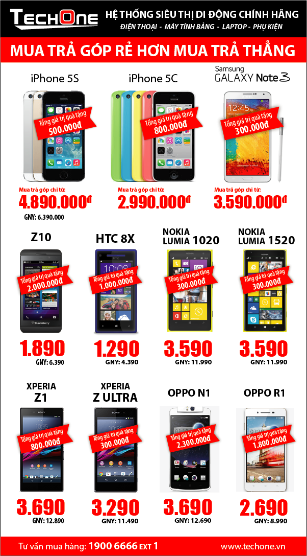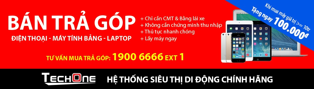 - Giá bán mua trả góp bằng giá trả thẳng và mọi chương trình khuyến mãi mà TechOne đang áp dụng cho khách mua tại cửa hàng cũng áp dụng khi mua trả góp.