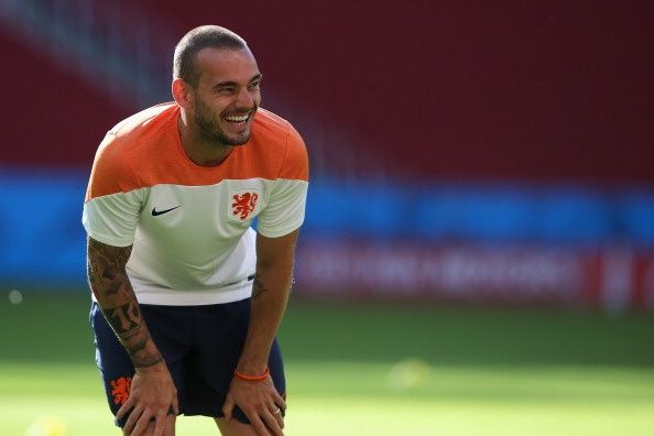 | Sneijder có tinh thần khá vui vẻ. Anh là cầu thủ quan trọng ở hàng tiền vệ của đội tuyển "cơn lốc màu da cam". |