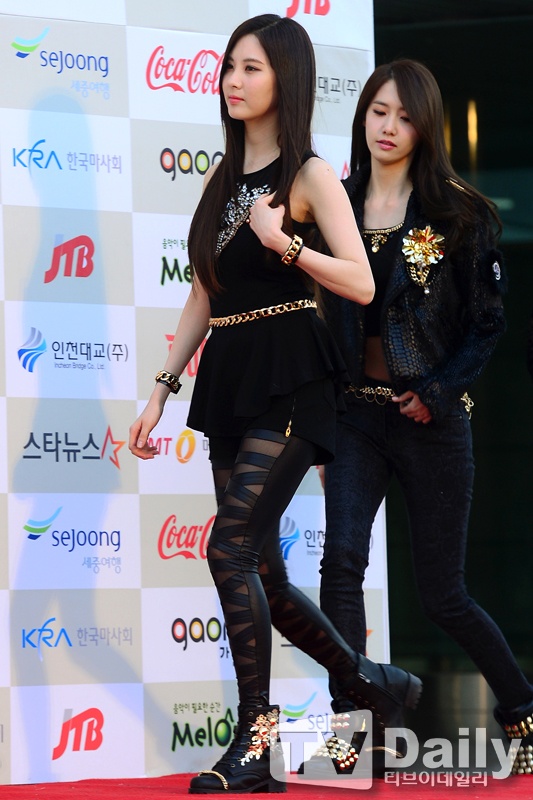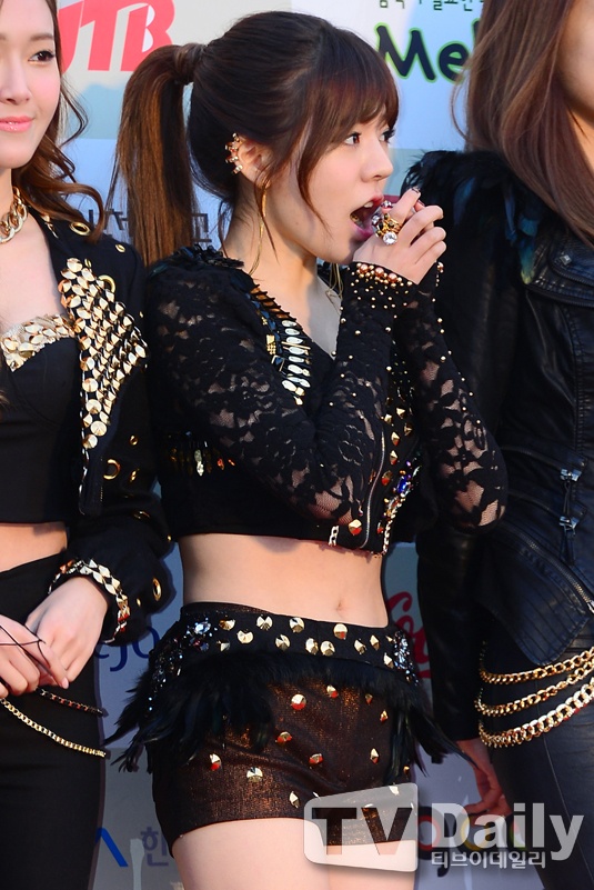 | Sunny là thành viên diện đồ ngắn nhất SNSD. Không chỉ diện một chiếc áo ngắn để lộ vòng 2, cô còn mặc quần short mà không có thêm bất kỳ trang phục bảo vệ chân nào khác. |