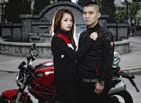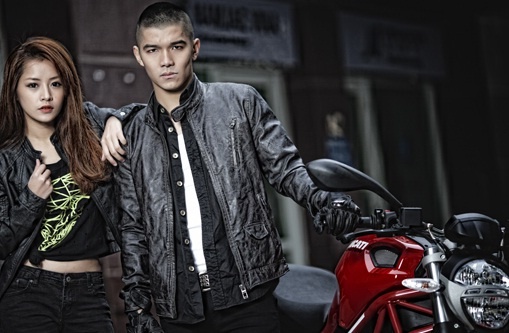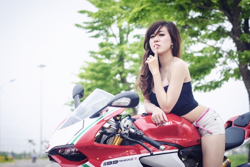 | Nana thể hiện bên chiếc xe Ducati hầm hố. |