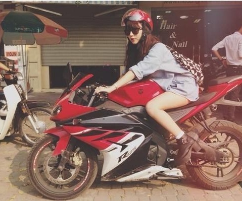 | Hot girl Huyền Lizzie khỏe khoắn bên chiếc xe Triumph 1050cc. |