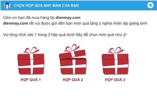 Từ 23/12 đến 31/12/2013, khi mua hàng online tại dienmay.com bạn sẽ được trải nghiệm cảm giác hồi hộp xen lẫn thú vị khi click mở 1 trong 3 hộp quà may mắn. Những quà tặng hấp dẫn nào đang chờ bạn là: