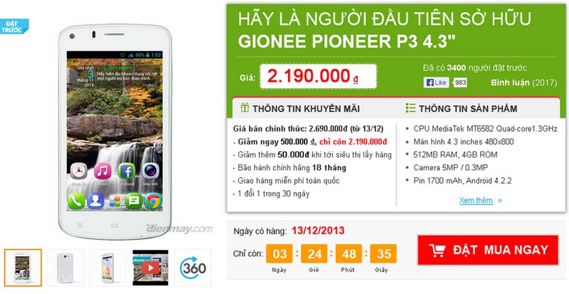 Giá kỷ lục sốc cho phân khúc smartphone tầm trung: 2,19 triệu đồng. Dienmay.com giới hạn số lượng đơn hàng đặt trước chỉ 5000 smartphone trong 4 ngày.