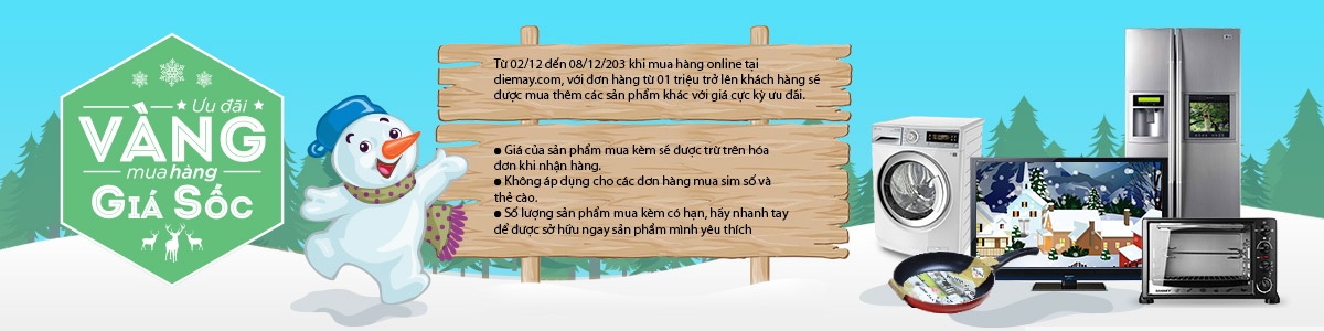 Những ưu đãi tuyệt vời mà dienmay.com mang đến cho khách hàng trong thời gian này giá rất tốt kèm hậu mãi chu đáo. Truy cập dienmay.com mỗi ngày để tận hưởng niềm vui mua sắm. Dienmay.com kính chúc bạn một giáng sinh hạnh phúc và năm mới thành công.