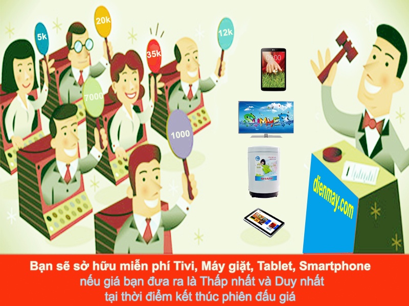 Một số điện thoại bạn được đặt giá miễn phí đến 10 lần/1 ngày. Người thắng cuộc sẽ sở hữu sản phẩm với giá 0đ. Là 1 ưu đãi lớn và đặt biệt cho khách hàng của dienmay.com. Không cần bỏ tiền ra sắm sửa cuối năm, bạn chỉ đặt lệnh và chờ rinh ngay Tablet, máy giặt, tivi…