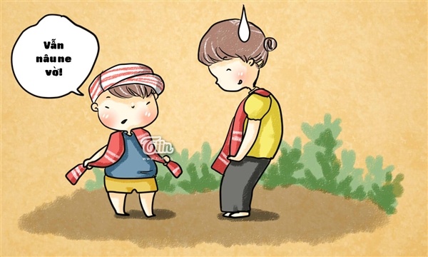 Bé Bi tỏ ra là người phiên dịch tiếng Thái siêu hạng. Khi nghe các cô người Thái nói, con trai danh hài Xuân Bắc nhanh nhảu đáp: "Cô nói gì thì con không biết nhưng con có thể hiểu như vậy. Con gà mà đi ăn đêm, đậu phải cành mềm bị... bay lên trời."
