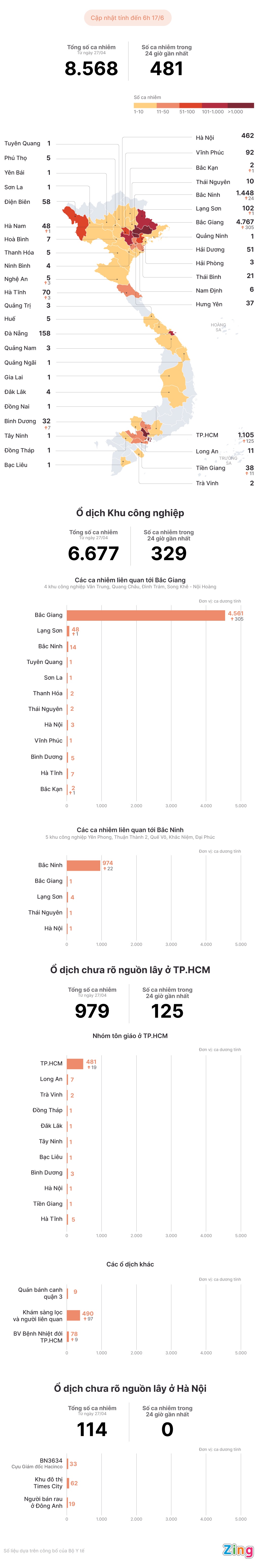Từ 27/4 đến nay, ổ dịch Covid-19 tại các khu công nghiệp ở Bắc Giang, Bắc Ninh có tổng cộng 6.677 người. Hầu hết ca mới thuộc diện đã cách ly.