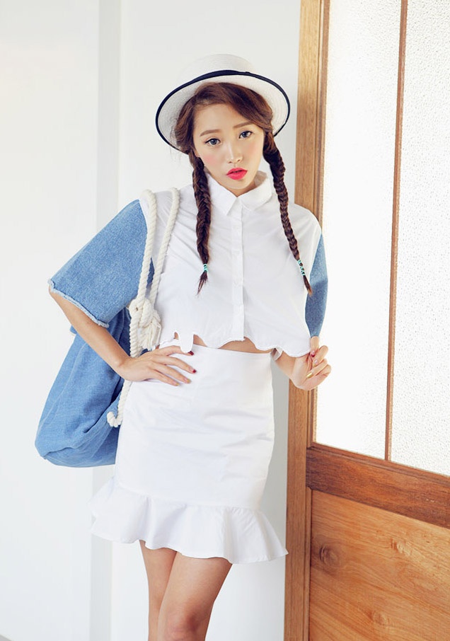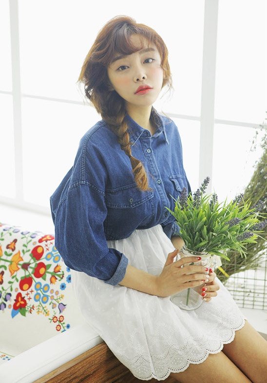 | Với chất liệu denim, bạn cũng có thể tìm được sự mới mẻ với kiểu dáng boxy mix kèm chân váy trắng lãng mạn. |