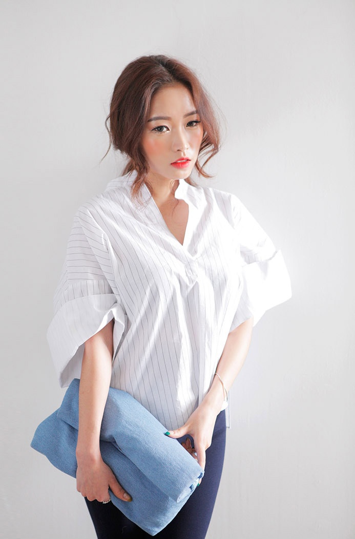 | Với sơ mi boxy bạn có thể thoải mái khoe chân trong những kiểu trang phục giấu quần. |
