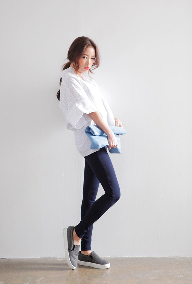 | Sơ mi boxy mix kèm quần skinny trẻ trung và không kém phần cá tính. |