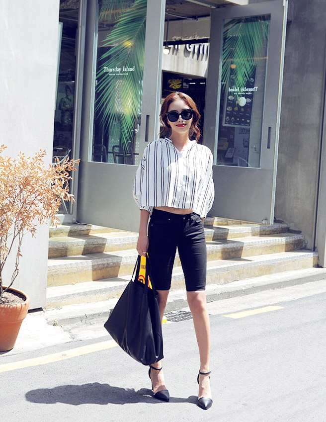 | Dân công sở có thể năng động hơn với sơ mi boxy và short trắng ngày hè. |