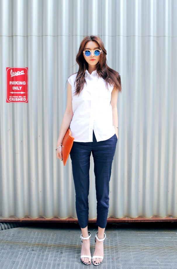 | Mix kèm quần âu và sandals quai ngang là bạn đã có một bộ tới công sở rất thu hút. |