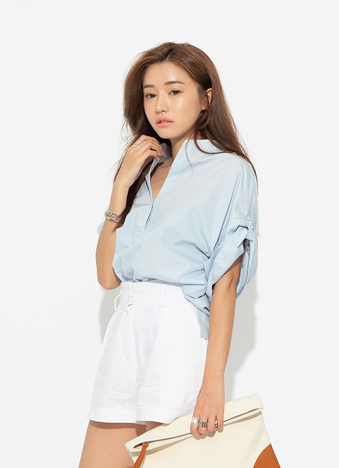 | Sơ mi boxy buộc túm giúp bạn khoe vòng eo ngày hè. |