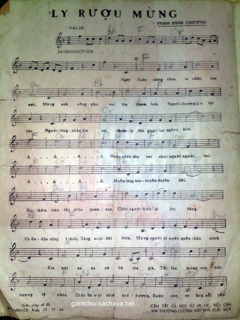 Bản in ca khúc Ly rượu mừng phát hành năm 1966. Ảnh: TL |