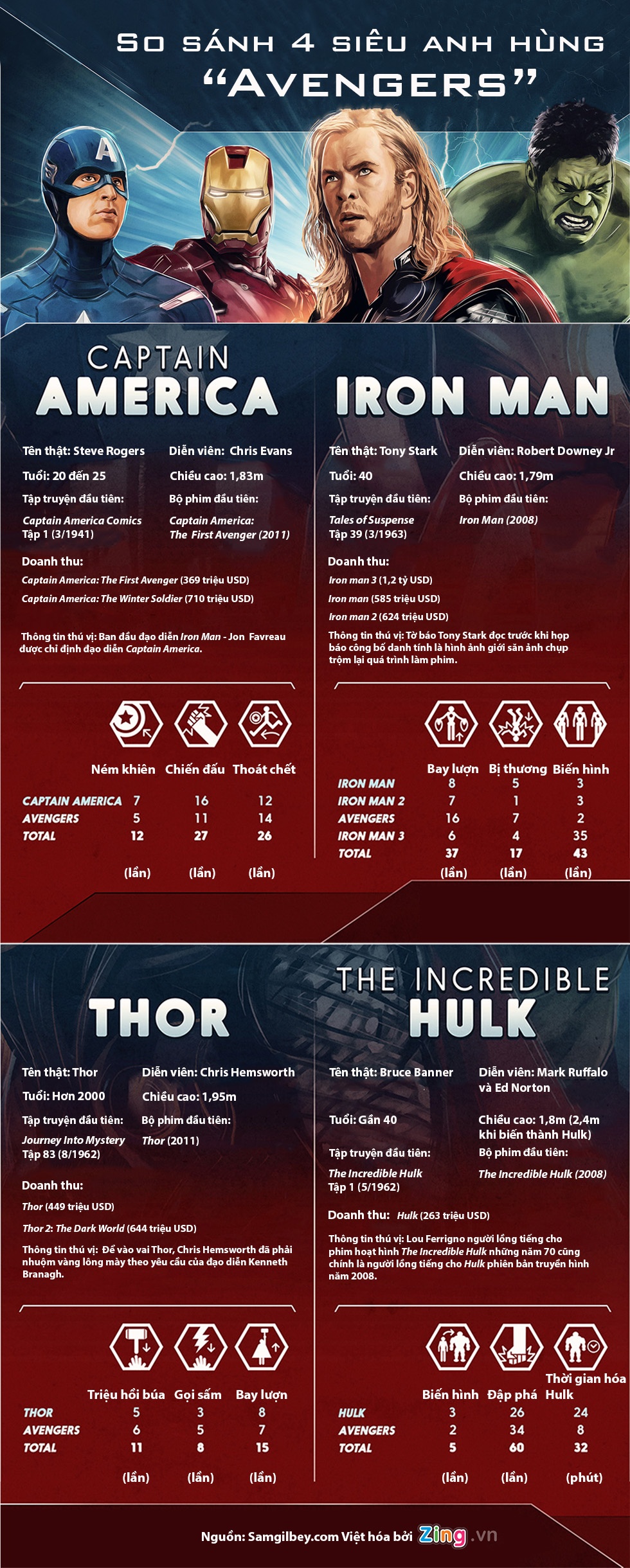 So sánh 4 siêu anh hùng trong biệt đội 'Avengers'