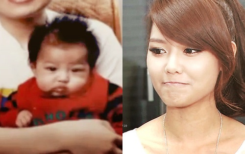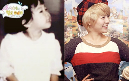 | Trong hình là bức ảnh của Sunny ngày thơ bé với mái tóc ngắn khá tương đồng với kiểu tóc Tomboy trước đây của cô nàng. Bên cạnh đó khi trưởng thành Sunny cũng có đôi chút thay đổi với chiếc mũi cao, thon gọn hơn. |