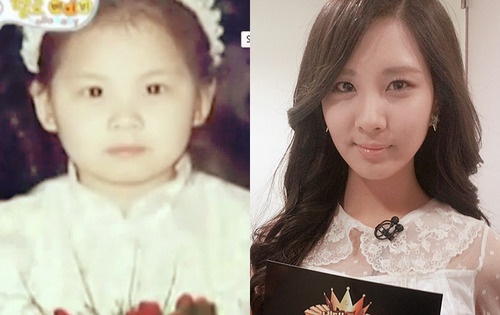 | Điệu bộ đáng yêu của thiên thần Yoona vẫn y như ngày nào từ đôi mắt to tròn cho tới chiếc mũi cao vẫn không hề thay đổi. Chỉ có một sự khác biệt nho nhỏ giữa 2 bức hình là sự mĩm mĩm đáng yêu thời thơ ấu so với thời điểm hiện tại. |
