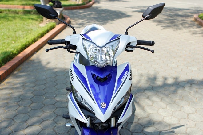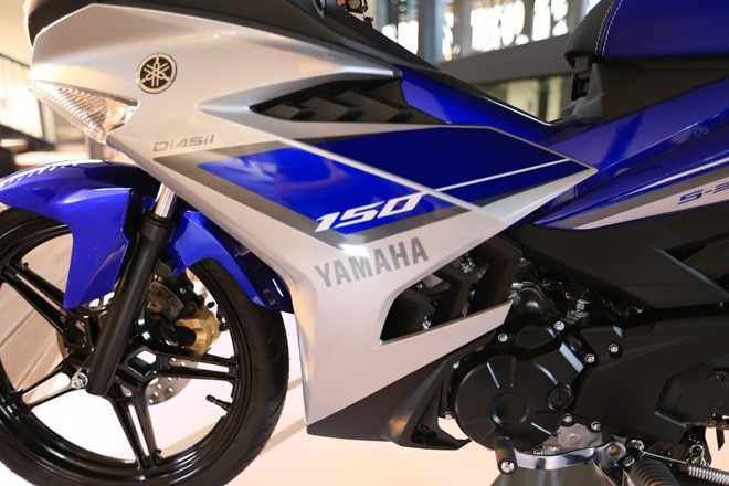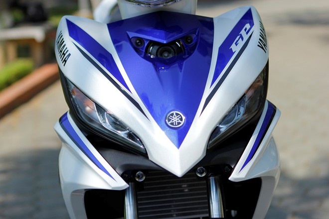 | Phần đầu xe Exciter GP 150 chủ yếu màu xanh trong khi bản cũ là màu trắng. |