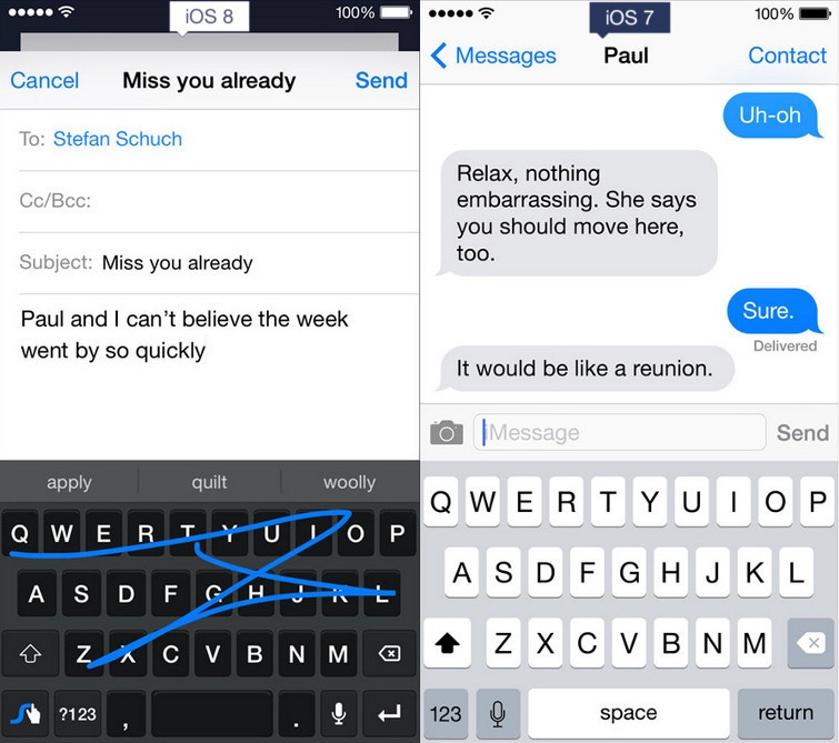 Gửi tin nhắn thoại và video với iMessage, bàn phím của bên thứ 3, hệ thống thông báo được tinh chỉnh cho đơn giản hơn.... là những điểm khác biệt nhất giữa iOS 8 và iOS 7.