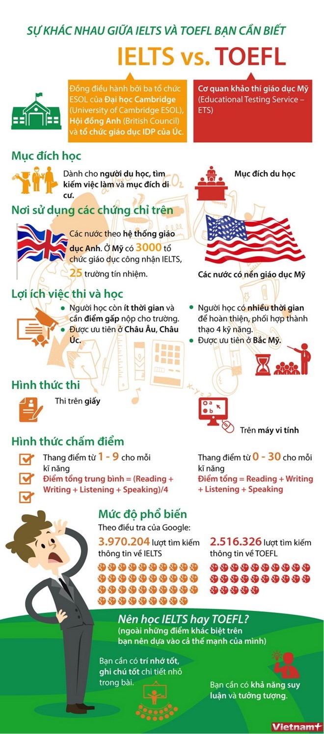 "TOEFL và IELTS – điểm khác nhau cơ bản là gì? Hình thức học khác nhau như thế nào?" là những câu hỏi mà nhiều người thường băn khoăn khi lựa chọn phương pháp học tiếng Anh.