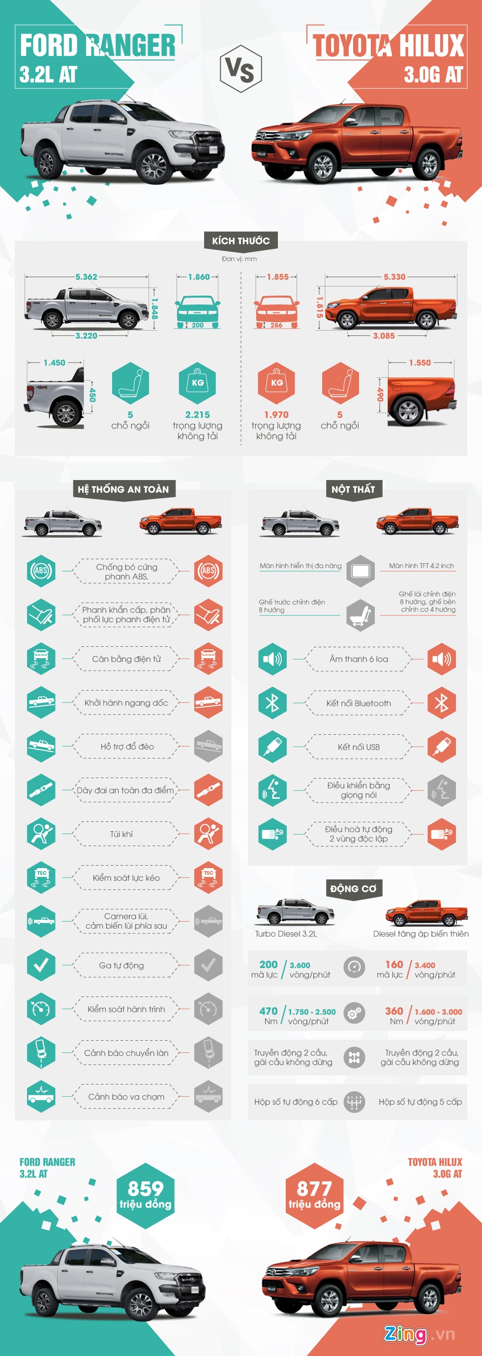 So sánh Toyota Hilux 2016 và Ford Ranger 2016