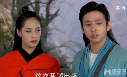 | Mộc Uyển Thanh (Triệu Viên Viện) và Đoàn Dự trong một cảnh quay. Mộc Uyển Thanh bản 2013 này bị đánh giá là kém sắc so với Tưởng Hân trong 2003. |