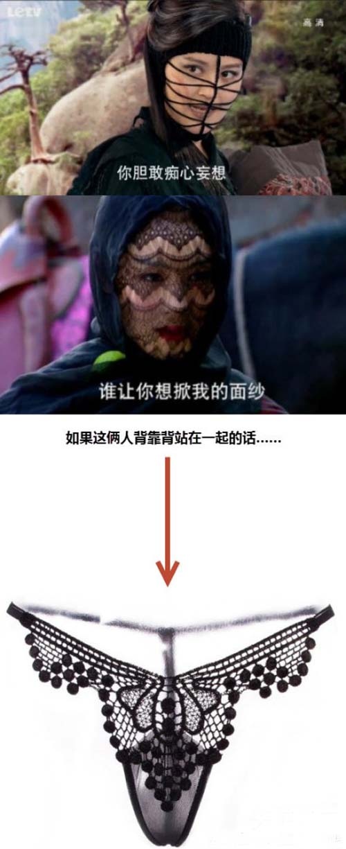 | Chiếc mạng ren của Mộc Uyển Thanh bị so sánh với một bộ đồ lót hiện đại. |