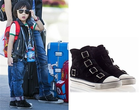 | Giày thể thao hãng Ash của bé Kimi được niêm yết với giá 700 tệ (gần 2,4 triệu đồng). Cậu bé thường xuyên mặc đồ đôi giống bố. |