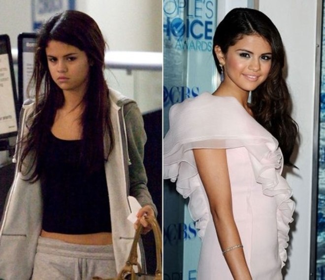 | Selena Gomez lộ mụn trứng cá và gương mặt hai cằm, có phần nặng nề khi không trang điểm. |