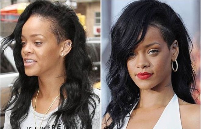 | Rihanna có gương mặt nhiều dầu và nếp nhăn nơi cánh mũi. Những ai sở hữu da dầu như Rihanna đặc biệt lưu ý khi trang điểm, nhất là thời tiết nóng ẩm của mùa hè nên sử dụng sản phẩm khống chế dầu, làm giảm tối thiểu sự tiết bã nhờn trên da. |