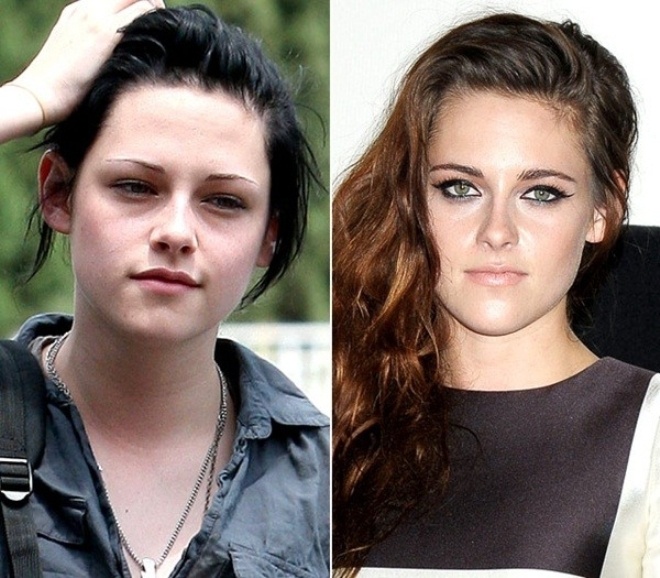 | Rũ bỏ lớp trang điểm, Kristen Stewart nhìn trẻ trung hơn nhưng có phần kém sắc với gương mặt không được thon gọn và đôi mắt nhỏ. |
