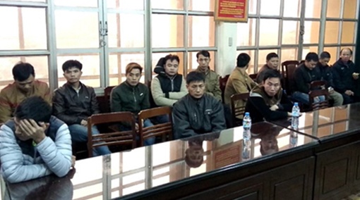 | Cảnh sát bắt giữ 17 người tại sới bạc. Ảnh: V.Q. |