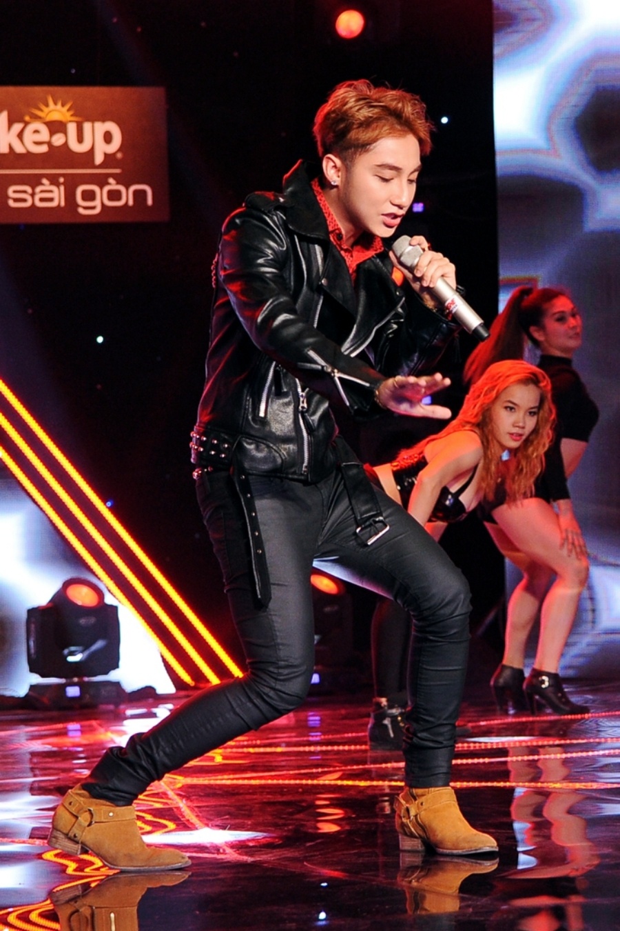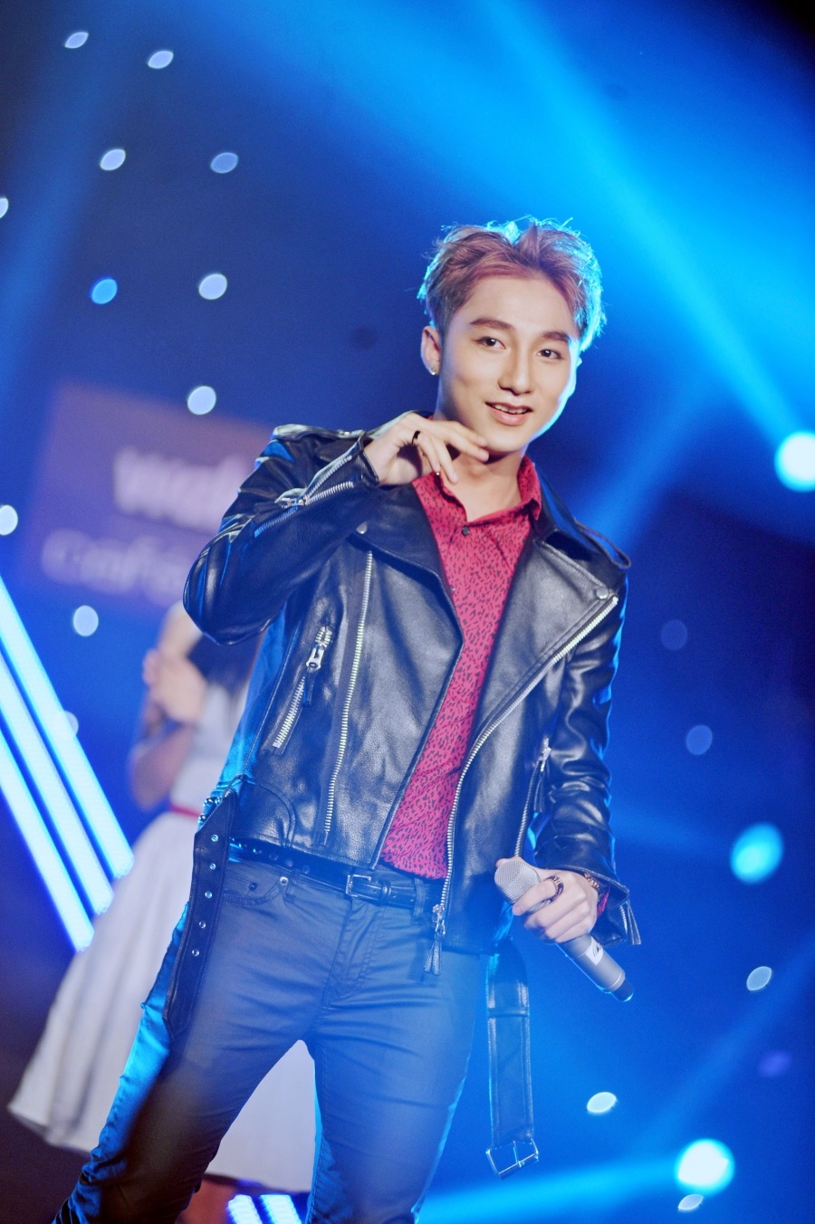 Nam ca sĩ khiến cả sân khấu bùng nổ với phong cách trình diễn thu hút trên nền nhạc sôi động. |