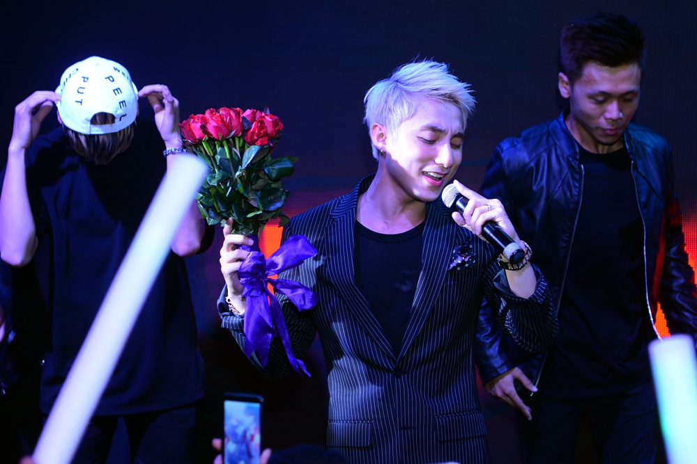 | Chàng ca sĩ gốc Thái Bình chia sẻ, anh đã 21 tuổi và có vẻ hơi già nên mong nhận được sự cổ vũ nhiệt tình của các fan hâm mộ. Mặc dù đã qua ngày sinh nhật, fan Hà Nội vẫn gửi tới ca sĩ những bó hoa tươi thắm. |