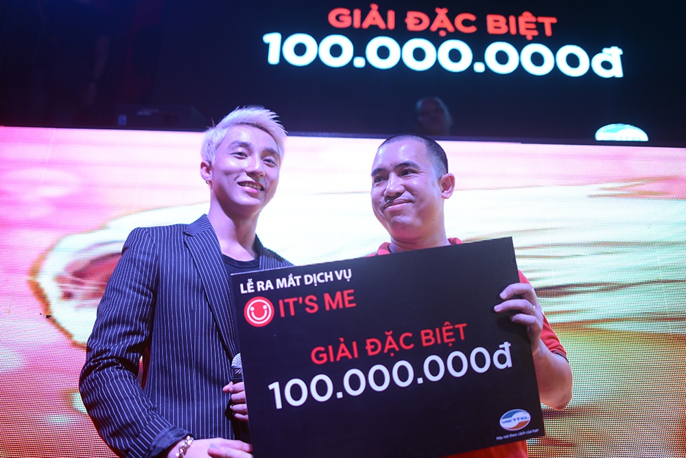 | Avatar với tên gọi “Không phải dạng vừa đâu” (hình ảnh trên màn hình phía sau Sơn Tùng M-TP) có 6 triệu lượt tải. Sơn Tùng thay mặt Viettel trao giải 100 triệu đồng cho Hiếu Orion - hot vlogger, tác giả của sản phẩm độc đáo này. |