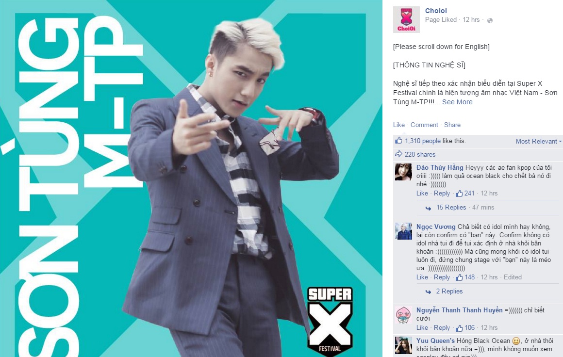 Sự việc Sơn Tùng M-TP có mặt trong show diễn này đang gây những ý kiến trái chiều trong người hâm mộ. Một luồng ý kiến khẳng định nam ca sĩ xứng đáng là đại diện Việt Nam chung sân khấu với nghệ sĩ nổi tiếng xứ kim chi. Nhưng cũng không ít fan ví von là "trò cười" bởi chàng ca sĩ này dính không ít nghi án đạo nhạc, đạo phong cách của các nghệ sĩ xứ kim chi. Đặc biệt, trước đó, còn có thông tin Big Bang - nhóm nhạc vẫn được coi là "hình mẫu" của Sơn Tùng M-TP - cũng tham gia Super X Festival.