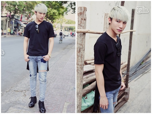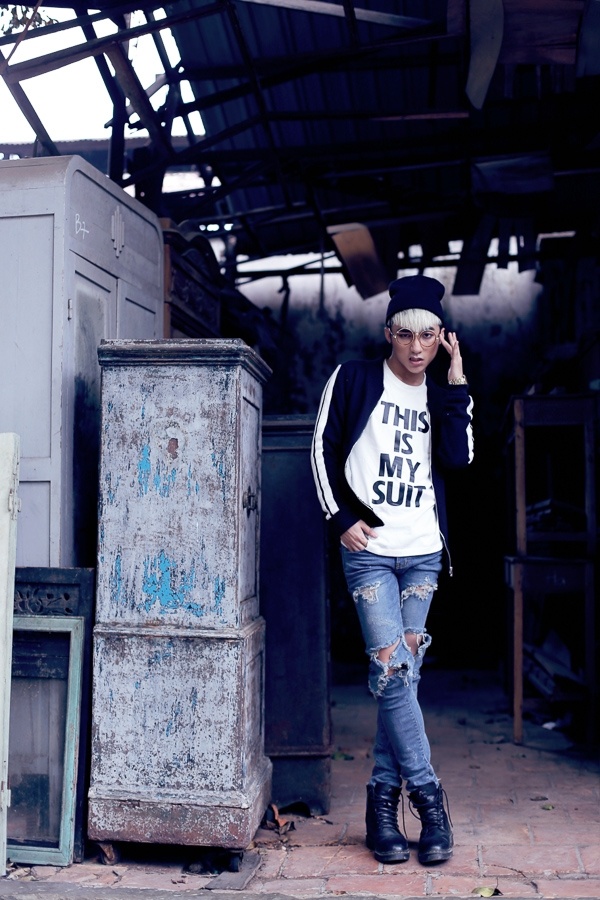 Nam ca sĩ sinh năm 1994 bắt đầu hướng đến hình ảnh lạnh lùng, phủi bụi. Anh diện jeans kèm áo sơ-mi trắng, đi boots cổ ngắn đậm chất street. Táo bạo hơn với mái tóc được nhuộm màu bạch kim.