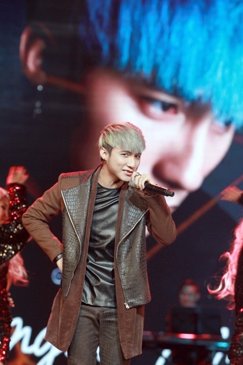 Trang phục chất liệu da giúp nam ca sĩ tự tin và nổi bật trên sân khấu ca nhạc.