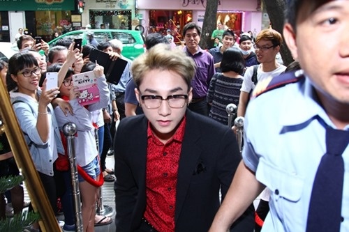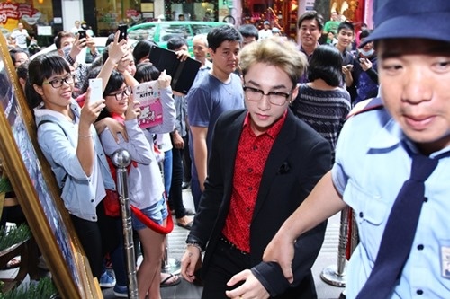 | Đông đảo bạn trẻ có mặt từ rất sớm để gặp Sơn Tùng và Hari Won. Giọng ca Em của ngày hôm qua khá vất vả để đi vào hậu trường. Không những vậy, các fan còn hô đồng thanh tên của Sơn Tùng M-TP gây sự chú ý cho nhiều người đi đường ở phố Đồng Khởi. Sơn Tùng M-TP được vệ sĩ theo sát để thoát khỏi vòng vây của người hâm mộ. |