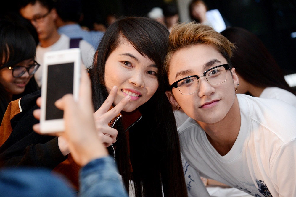 | Sơn Tùng rất thân thiện, cười đùa, chụp hình cùng fan. MV Chắc ai đó sẽ về sau khi thay beat cán mốc 1 triệu lượt nghe trong ngày đầu tiên ra mắt. |