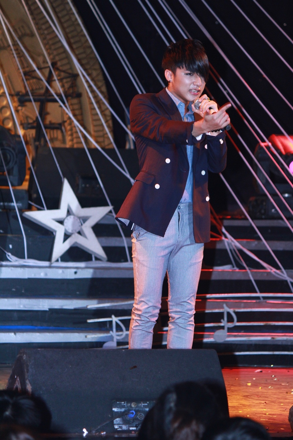 | Nam ca sĩ xuất hiện khác lạ với mái tóc được nhuộm đen. Lý do Sơn Tùng M-TP từ bỏ mái tóc màu bạch kim vì anh đang đảm nhận vai chính trong bộ phim Chàng trai năm ấy do Quang Huy làm đạo diễn. |