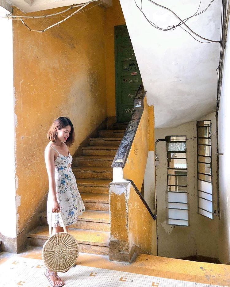 Nếu dành một ngày thảnh thơi để lòng vòng Sài thành, bạn sẽ phát hiện ra thành phố hiện đại bậc nhất này vẫn còn những góc nhỏ bình yên, khác biệt. Tọa lạc trên một con đường đông đúc ở quận 1, khu chung cư Tôn Thất Đạm là địa điểm lý tưởng cho các “tín đồ sống ảo”. Nơi đây mang nét xưa cũ với bức tường vàng cũ, hành lang dài và những thanh chắn cầu thang phai màu theo thời gian. Ảnh: Uyennta, yuu.yenn. |